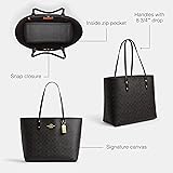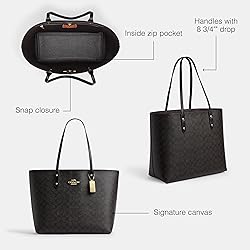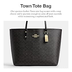 Editor's Notes: Our spacious leather Town tote bag secures with a snap closure and is spacious enough to carry all your essentials Our Signature Canvas: The best kind of mix up. This rich, mixed leather design combines smooth leather with our signature canvas - for an iconic Coach tote bag Casual Meets Dressy: Our large tote bag has plenty of room but maintains a sophisticated look It's All in the Details: Inside zip pocket, Snap closure, Handles with 8 3/4" drop. 12 1/4" (L) x 12 1/2" (H) x 4 3/4" (W) This is COACH: Having the courage to be real since 1941. COACH is the Original American House of Leather - with a legacy of craft and a community that champions the courage to live authentically