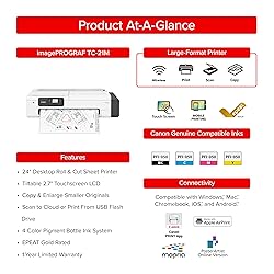 Canon imagePROGRAF TC-21M – Multifunction Printer| 24" Large Format Poster & Plotter Printer - Automatic Roll & Cut Sheet Paper Feeder, USB, Wi-Fi, LAN,White