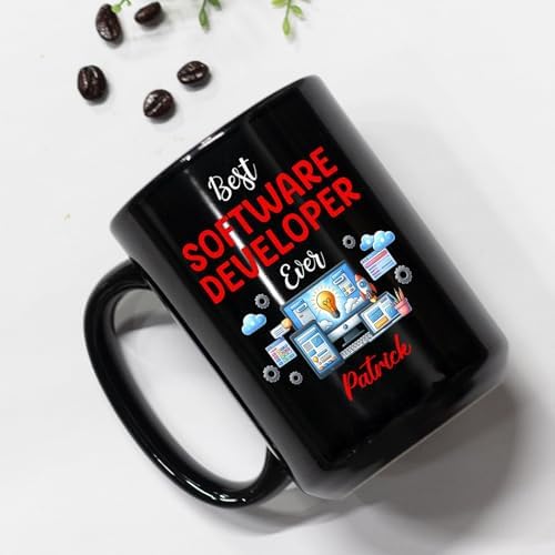 - GOOD MATERIAL: This unique Best Software Developer Ever black coffee mug is made from durable ceramic with a glossy finish and sturdy walls for long-lasting use. A stylish and high-quality mug perfect for any occasion.