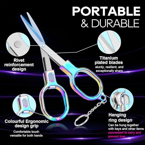 - Exclusive & Perfect Supply Set: Each Keychain scissors come with a key ring and key chain. Portable scissors expanded size: 11.5*5.5 cm/4.5“*2.2” (LxW); Folded size: 10*2.7 cm/3.9“*1.1”, compact scissors are perfect gift for friends and relatives during the festival