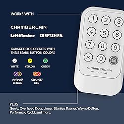 - The Universal Wireless Keypad provides trusted, convenient walk-in access without using a remote control or key. Set up in seconds with new and improved wireless programming. The illuminated keypad includes features such as a one-touch close button for efficient exits and a temporary PIN that can be programmed to allow limited access for guests.* A personal four-digit access code allows for easy entry to your home. Plus, the highest level of encryption prevents hacking and provides peace of mind. *Available with Chamberlain, LiftMaster and Craftsman Garage Door Openers manufactured after 1997.