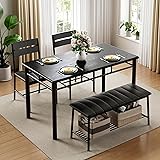 IRONCK Dining Table Set for 4, Kitchen Table with Upholstered Bench and 2 Chairs, Kitchen Table and Chairs Set for Small Space, Apartment, Black