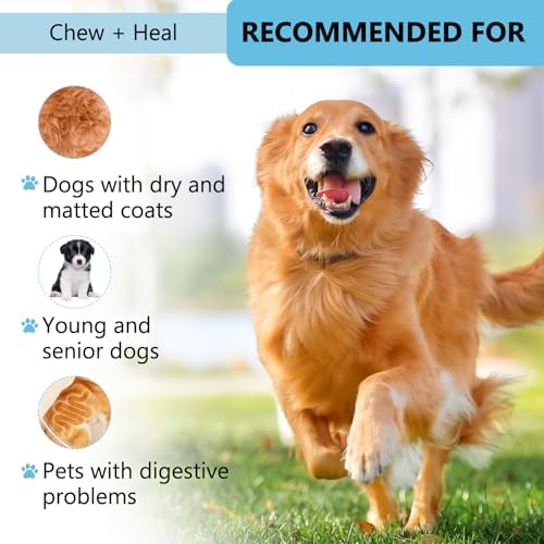 - Skin, Coat, Immune & Digestive Support: These vitamins for dogs contain Omega 3 fatty acids, probiotics, glucosamine, which can help reduce itchiness, promoting healthier skin and a shinier, supporting digestive health, and bolstering your dog’s immune system
