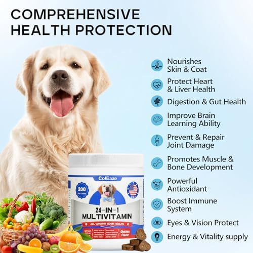 - 24-IN-1 Comprehensive Dog Multivitamin: Our dog vitamins and supplements provide essential nutrients, including Glucosamine, Probiotics, and Omega Fatty Acids, ensuring top-to-tail well-being