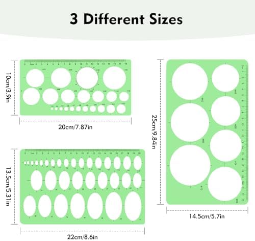 - Uses: With multiple circle sizes, it caters to diverse needs, serving as a handy tool for architecture, math, drafting, quick sketches, design projects, art creation, and academic work.