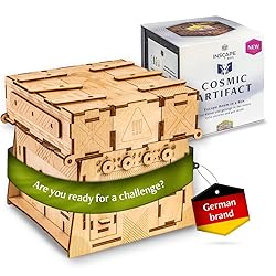 Escape Room Puzzle Box: Get ready to be challenged by our puzzle boxes for adults! Find out if you’ll manage to open the treasury and unveil the Cosmic Artifact treasure with the new INSCAPE creative game that will push your limits to the edge. Done in 150-210 Minutes: Our escape room in a box is a great way to have fun on your own or with family and friends. Each of our 3D brain teaser puzzles features a lot individual parts that have been carefully assembled by hand. The Ultimate Gift: These puzzle boxes with hidden compartments are a great gift for puzzle lovers. Whether it’s their birthday, anniversary, Valentine’s Day, Easter, or Christmas, make sure to surprise them with a unique gift that they’ll never forget. Do it Over and Over Again: After you have solved the wooden puzzle box, you can easily reassemble the puzzle box and play again! Additionally, you can use these secret boxes for hiding small presents or money for your loved ones. Difficulty level of 5 out of 5. SURPRISE: We have designed our brain teaser puzzles for adults as a journey that will keep you on your toes. Each INSCAPE box hides a coin. As soon as you’ve solved 8 INSCAPE puzzles, you can turn the coins into a new and exciting puzzle
