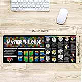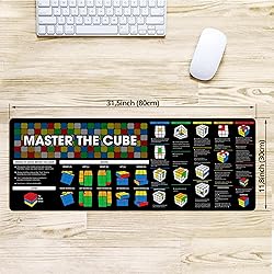 Extra Large & Comfortable: Measuring 31.5 x 11.8 inches with a 3mm thickness, this XL mouse pad offers ample space for your mouse, keyboard, and more - ensuring comfort and reducing noise. Smooth & Precise Control: Enjoy effortless mouse movement with the ultra-smooth surface, perfect for both gaming and office work. Non-Slip Rubber Base: The anti-slip rubber base keeps the pad securely in place during intense gaming or work sessions. Durable & Stylish Design: Invisible stitching prevents edge wear while maintaining a sleek look, extending the pad’s lifespan. Waterproof & Easy to Clean: The water-resistant coating allows for quick cleaning—spills and stains wipe away easily. Desk Protection & Great Gift: Doubles as a desk mat to guard against scratches and stains—an ideal gift for gamers, professionals, and home offices. Step-by-step solution guide printed directly on the mouse mat so you can practice and learn without looking up tutorials. Clear & Easy-to-Follow Layout – Color-coded cube diagrams and notation for each step: cross, F2L, OLL, PLL, and final solve. The Ideal Gift for Cubers – Perfect for anyone who loves puzzles, wants to learn the cube, or is training for competitions.
