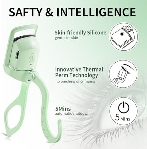 - 👧🏼【Safty & Smart】Our electric eyelash curler features a skin-friendly silicone tip designed, ensuring no pulling or tugging on your lashes. With advanced heat technology, it prevents overheating, No burns. While 5-minute auto power-off function guarantees safety and saves energy.