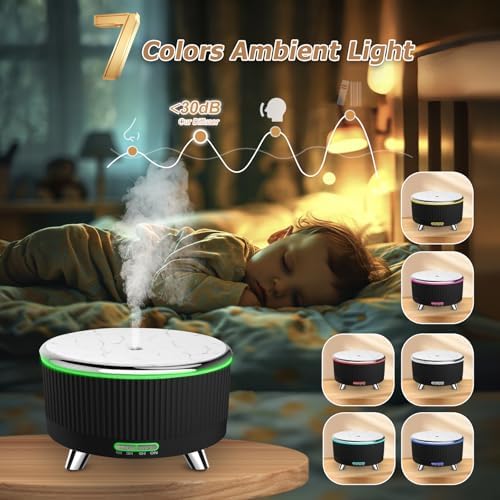 - 【Low Noise & Auto Shut Off】Essential oil diffuser large room has low-noise mode and slight water flow sound,white noise,infuser aroma diffuser,bringing you better sleep.Oil diffuser large room has waterless auto-off,so you don't have to worry about power safety issues after falling asleep,fragrance diffuser,making you feel comfortable.diffusers for essential oils keeping your room dry.decorations for bedroom,3 IN 1 night light,diffuser,humidifier.Multiple functions used together.