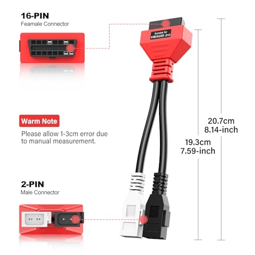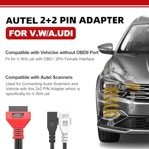 - ✅【Autel Original 2+2PIN OBD2 Adapter for VW Audi, Work With All Autel Scanners】The 2+2 pin adapter is approximately 7.6 inches/19.6 cm in length and allows you to connect the vehicle with a OBD1 2pin socket with your existing 16 pin OBD2 scanner to perform a rang of advanced function, such as full system diagnostic, bidirectional control, etc.