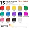 Shuttle Art Fabric Paint, 15 x 12ml Tubes Permanent Soft Fabric Paint with 3 Brushes, Non-Toxic Textile Paint for Clothes, T-Shirts, Shoes, Jeans, Bags, DIY Projects&Art, Ideal for Kids Adults Artists