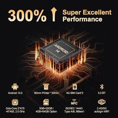 - Versatile connectivity with dual-band Wi-Fi (4G), Bluetooth, and SIM support: Stay connected at all times with dual-band Wi-Fi (4G) connectivity for a stable and fast internet connection, Bluetooth 3.0/4.2/5.3 BLE for connecting peripherals, and support for standard SIM cards for reliable mobile connectivity anywhere. This comprehensive connectivity ensures that your business remains operational even on the go.