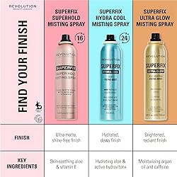 - The Revolution Superfix Hydra Cool Mist preps, sets and refreshes your face throughout the day with a innovative cooling formula. KEY BENEFITS: • Enriched with aloe vera, coconut water & hydroviton plus. • Dries down in 3-seconds, locking in makeup in place for 24hrs*. • Gives a dewy & refreshing finish to the skin. FORMULA: Enriched with aloe vera, coconut water & hydroviton plus. HOW TO USE: The Revolution Superfix Misting Hydra Cool Mist can be applied without makeup or over liquid, cream and powder products. After you have applied your base, hold the spray around 4in (10cm) away from your face and spritz a light mist for a dewy and hydrated finish. Re-apply whenever you want that refreshing feel. Vegan & Cruelty Free. *Tested on 57 consumers over 1 week.