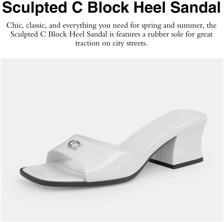 Coach Women's Sculpted C Block Heel Sandal Heeled, Optic White, 8