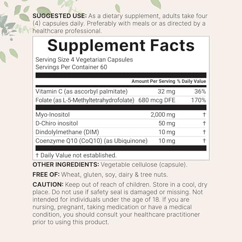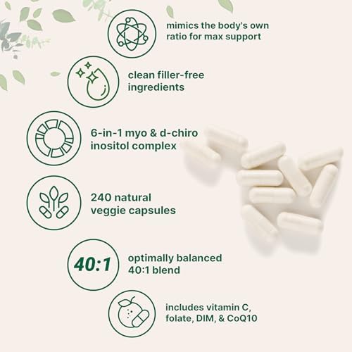 Myo-Inositol & D-Chiro Inositol 2,050mg | 240 Veggie Capsules + Vitamin C, Folate, DIM, & CoQ10 | Inositol Supplement for Women | 40:1 Ratio | Hormonal Balance & Ovarian Support | Filler Free