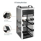 - Upgrade your workspace with this compact 10-inch mini rack, perfect for desktops, home labs, network closets, AV setups, and small offices. Built from heavy-duty steel with premium acrylic side panels, this open-frame rack delivers superior durability, stability, and maximum airflow for optimal cooling of your NAS, custom clusters, patch panels, network switches, routers, and other 10-inch rack-mountable devices. The translucent acrylic panels provide dust protection and easy monitoring of device indicators, while supporting ambient lighting for a modern, tech-inspired look. Each rack includes 3 blank panels, 2 rack shelf, 1 SBC shelf, 2 micro adapter boards, and all mounting hardware for fast, flexible installation and cable management. Available in 6U, 9U, or 12U sizes, this mini rack offers a space-saving, professional solution to organize and protect your essential equipment.