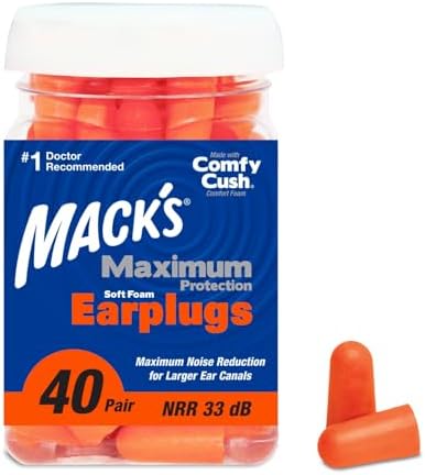 Mack’s Maximum Protection Soft Foam Earplugs – 40 Pair, 33 dB Highest NRR – Comfortable Ear Plugs for Sleeping, Snoring, Loud Concerts, Motorcycles and Power Tools | Made in USA