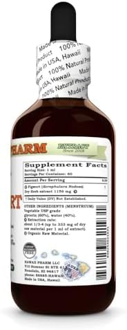 - 100% Natural, Alcohol-Free & Pure: Trust in Hawaii Pharm’s commitment to excellence. Our Figwort Extract is a 100% natural, alcohol-free product, free from additives, colorants, flavorings, and sugars. This ensures you receive the purest form of the herb without any unwanted ingredients. Our rigorous quality control measures guarantee the highest standards of purity and effectiveness, providing you with a product you can trust.