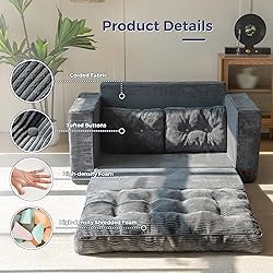 Convertible 2 in 1 Design: Our convertile sofa bed features an innovative 2-in-1 design that is easy and convenient to operate with just a gentle pull, transforming from a comfortable sofa into a spacious folding bed. Whether it's daily leisure time or sudden guests at home who need to stay overnight, it can easily meet your needs Corded Fabric and Tufted Craft: Corded fabric has a soft and delicate touch, with good breathability and wear resistance. The unique tufted process not only enhances the firmness of the fabric, but also adds a touch of retro and fashionable feeling to the overall design Generous Dimensions: With a sofa size of 32"L x 55.5"W x 21"H and a spacious sleeper size of 83.5"L x 40"W x 7"H, Using high-density support foam filling, it can provide excellent support and comfort in both forms,making it an ideal choice for both lounging and sleeping Multi-functional Use : This folding sofa couch is favored for its versatility and comes with two pillows, suitable for various living scenarios. Whether it's the living room, study, balcony, or guest room, it can perfectly blend in and become an ideal choice to enhance home style and practicality Effortless Setup: The folding sofa is pre filled, you don't need to fill it yourself, just unfold, tap and shake to restore the compressed elasticity, wait for about 48 hours to return to its original shape and enjoy!