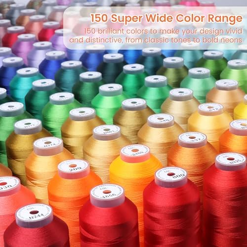 New brothread Embroidery Machine Thread 4000M/4400YD Each Spool Mega Kit 150 Vibrant Colors 40WT for Commercial, Industrial, Home-Used Embroidery Machines