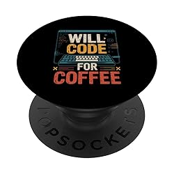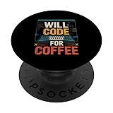 Will Code For Coffee Funny Programmer Text PopSockets Adhesive PopGrip