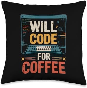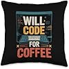 Will Code For Coffee Funny Programmer Text Throw Pillow