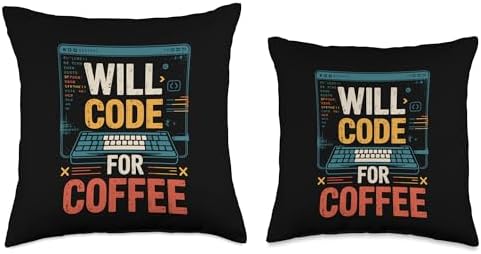 Will Code For Coffee Funny Programmer Text Throw Pillow