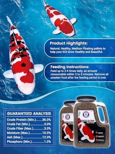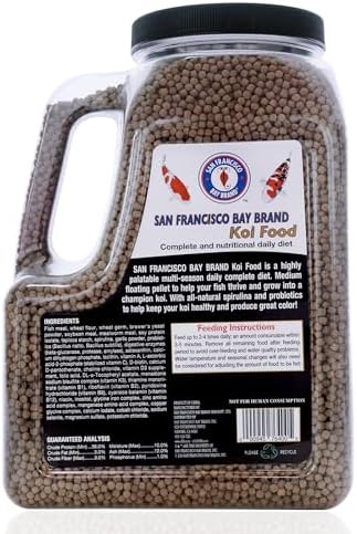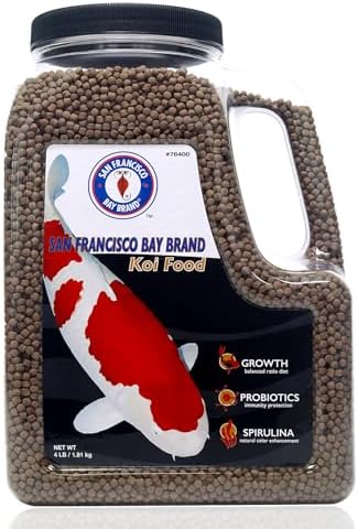San Francisco Bay Brand Premium Koi Fish Food 4 lbs - Medium Floating Pellets Fish Food, All-Natural Spirulina & Probiotics Koi Food, Complete Multi-Season Diet, Enhance Color & Immunity, 36% Protein