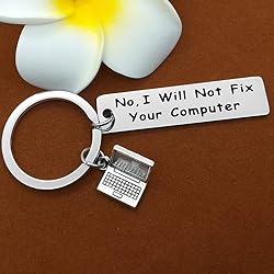- Funny Keychain Gift: No, I Will Not Fix Your Computer Keychain -A funny gift idea, Christmas or a fun birthday present! Get compliments & laughs from programmer, aerospace students, chemical engineers, mechanical enthusiasts or those pursuing an engineering career from reading your hilarious meaning keychain! Programmer Gift: Funny keychain gift for your best friend, dad, brother, boss or boyfriend. This represents an affordable novelty they will appreciate for years. Perfect For Birthdays, Holidays, Graduation Or Any Special Occasion Where A Smile Is Needed . Product Description: 1.Condition: New 2.Main materials:Stainless steel 3.Size:12*50MM 4.Color:Show as the picture Package included: 1xComputer Programmer keychains 1x Jewelrygift bag