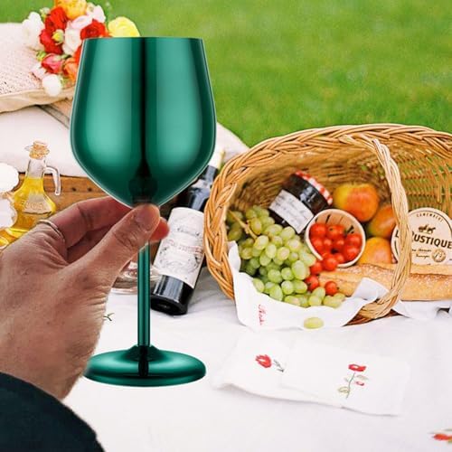 Stainless Steel Wine Glasses Set of 4 Unbreakable Green Wine Glass 18 oz Unique Metal Wine Goblets for Outdoor, Travel, Camping, Pool, Ideal Gift for Wine Lovers