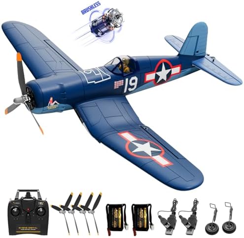 VOLANTEXR Brushless RC Plane 4 Channel - F4U Corsair 500mm RC Airplane with 3D Aerobatic & XPilot Stabilizer, 3 Flight Modes, 2.4G Remote Control Airplane RTF Fully Assembled 19in x16 inches