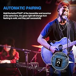 【One TX to Many RX】Multiple receivers can be paired to single transmitter, and there is no limits!!! Support up to "6" sets of device work simultaneously at the same time, perfect for small/medium stage gig and daily band practice. 【Auto-Pairing】This In Ear Monitoring system can pair automatically, no need to select the channel. Turn on the power, long press the two "PAIR" buttons at the same time, wait until the green light stop flashing, it paired successfully.That's how simple it is. 【Support Stereo Transmission】This two devices can transmit true 100% stereo audio. One-Key to change Stereo/Mono input, providing smooth frequency response(Please make sure the audio source is stereo audio and use a stereo cable) 【2.4GHz Wireless IEM】LEKATO MS-1 Wireless IEM adopts 2.4G frequency band, lossless sound quality, low noise/low latency. <12ms, 24-bit/48kbps high resolution, Broad 20Hz-20KHz frequency response,Dynamic Rang 105 dB. 【Long Battery Life】Built in Rechargable Battery, the wireless in ear monitor system can last more than 5 hours after fully charged, enough for the daily use.