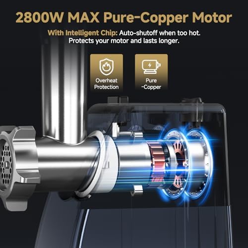 - Control & Safety:One-touch buttons for instant grinding,Jammed ? Activate the jam-busting REV button ! Built-in overheat protection to protect the motor from overheating.Grinder through meats worry-free with this intuitive,user-safe meat grinder.