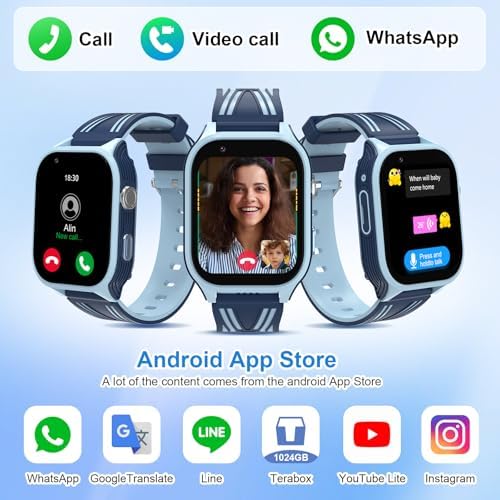 - 4G Video Calling Anytime Anywhere: This smart watch for kids with sim card supports 4G calling video chats and WhatsApp, offering messaging, video, and voice calls. Parents can easily connect with their child anytime, anywhere, including sending pictures, making communication more engaging. Manage everything effortlessly through the app, ensuring a safe and reliable experience for your child.