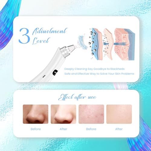 - 【3 Suction levels & 5 Suction Probes】–3 Different powerful suction levels suitable for different types of skin to achieve genuine deep cleaning. Pore vacuum cleaner level 1 is suitable for sensitive and dry skin, Level 2 is suitable for normal skin, Level 3 is suitable for combination and oily skin.Meanwhile , 5 replaceable probe are designed for different skin conditions,such as: clean up blackhead, remove dirt grease on the skin, reduce dead skin and fine lines.