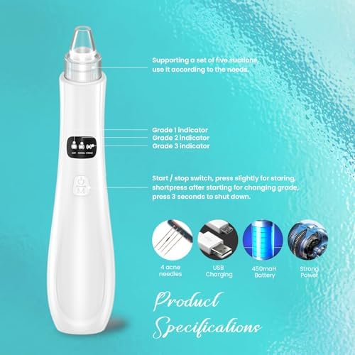 - 【Package Included】-Package Included:1 Blackhead Remover, 5 Probe Heads, 4 acne needles, 1 USB Charge Cable, If you have any questions about the blackhead removal, you can contact us at any time.Excellent customer service makes you purchase it without worries.