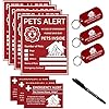 Pet Alert Sticker - Pet Inside Sticker,Safety Alert for Pets Inside,Save My pet in Case of Emergency,Rescue Pets Decal for House Window Door -4 Pack with Wallet Card & Key Tag