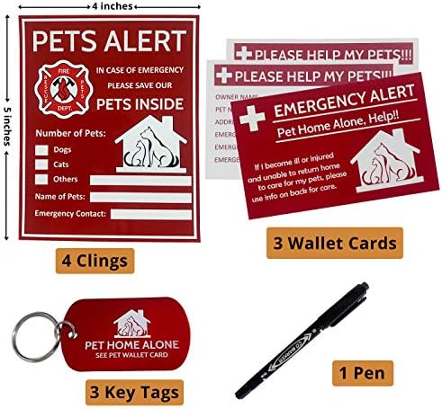 - 【NECESSITIES FOR ALL PET OWNERS】 - Are you searching for a product that can help you Peace of Mind While Your Pets are Home Alone In Case of an Emergency? our pet alert stickers offer you a peace of mind when unforeseen circumstances happen at home and our "My Pet Is Home Alone" wallet cards and key tags offer you a peace of mind when you become ill or injured,No more worrying about your pets being home alone, no matter where you are.