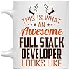 - Perfect Funny Gift for Full Stack Developer: Show your appreciation with this 11oz white ceramic mug featuring the humorous quote: This Is What an Awesome Full Stack Developer Looks Like. Perfect for Full Stack Developer, coworkers, or friends who love a good laugh while sipping their coffee or tea.