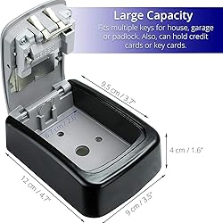 Secure Access Control: Features a resettable combination lock system allowing you to customize your security code, ensuring only authorized users can access the stored keys and valuables Weather-Resistant Design: Constructed with heavy-duty materials to withstand various outdoor conditions, protecting your stored items from rain, snow, and harsh environmental elements Versatile Installation: Wall-mountable design enables convenient placement outside homes, offices, rental properties, or any location requiring secure key storage and easy accessibility Spacious Storage: Large interior capacity accommodates multiple keys, access cards, and small valuable items, making it perfect for property management and shared access situations Multi-Purpose Usage: Ideal solution for various applications including home security, Airbnb hosting, real estate showings, and office access management, providing controlled entry without compromising safety