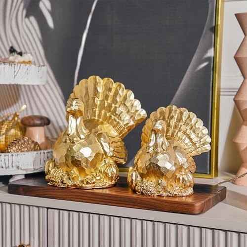 Thanksgiving Turkeys Decor, Gold Resin Turkey Figurine, Turkeys Statue for Decorating, Large Turkey Centerpiece for Table Kitchen Decoration, Harvest Home Decor