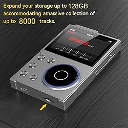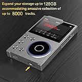 Lossless High Resolution Sound: The digital sound player features a 2.4 inch HD screen that delivers detailed, high resolution sound without distortion. It supports popular file formats such as FLAC, APE, DFF, MP3, WAV, WMA, M4A, MP2, AAC, ALAC, OGG, AIFF and Native DSD (up to 128bit/5.6MHz). User-friendly and intuitive design: This sound player is equipped with a 2.4 inch HD screen and intuitive ALPS scroll control for easy navigation when playing music. The player offers flexible use with line output and headphone output connections and is suitable for use with additional cables in car or home sound systems. Its compact size and excellent zinc alloy casing make it ideal for on-the-go listening. Bluetooth 5.3 Connectivity: The sound music player features bi-directional Bluetooth 5.3 connectivity that transforms your listening experience with lossless wireless sound using the APT X protocol. It can transmit to Bluetooth compatible devices such as headphones, speakers or act as a Bluetooth receiver. High Resolution Input: This digital music player can be connected to a USB amplifier with input to serve as a digital source, or used as an external decoding amplifier when connected to a smartphone or computer. It offers excellent battery life and expandable storage options. Expandable Storage: Enjoy up to 10 hours of continuous high-resolution sound playback via headphones or Bluetooth. The HiFi sound player has a built-in 16 GB memory, which can be expanded up to 256 GB using a memory card or other USB OTG device (OTG cable not included), allowing you to store up to 14,000 songs in your music library.