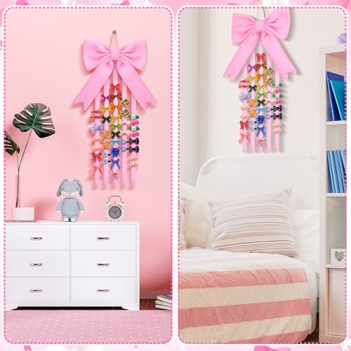 - Product Includes: a pink bow stand with a huge bow shape on the top, with a total of 5 ribbons; The bow stand can be hung on the wall for use This bow tie holder can accommodate multiple hairpins, making your hairpins no longer homeless Convenient for children's daily use and cultivate good storage habits
