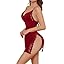PITINAN Sexy Lingerie for Women Slip Dress Sexy Pajamas for Women Lace Trim Slit Nightgown Cute Sleepwear S-XXL