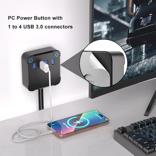 Computer PC Power Button, Desktop Power Button PC External Power Button with 4 Port USB 3.0 Hub