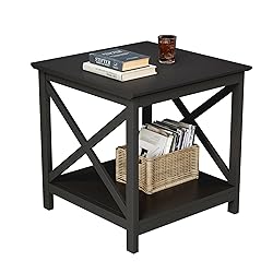 【Ample Storage with 2 Tiers】This end Table features two spacious shelves, offering ample room for books, remotes, décor, and other daily essentials. Keep your space tidy and everything you need close at hand 【Square and X-Frame Design】With a sleek square design and decorative X-frame sides, this side table blends form and function. Its timeless design complements modern, farmhouse, and transitional interiors 【Versatile for Any Place or Style】Use it as a sofa side table in the living room, a bedside table in the bedroom, or an accent table in your home office. Perfect as a mini fridge stand. The clean look works beautifully across different rooms and décor styles 【Sturdy and Stable Construction】Constructed from high-quality MDF and coated with water-based, eco-friendly paint, this table is strong and reliable. The X-frame structure adds extra stability for everyday use 【Hassle-Free Assembly】Comes with clearly labelled parts and easy-to-follow instructions. If you have any questions, our friendly customer service team is always ready to help