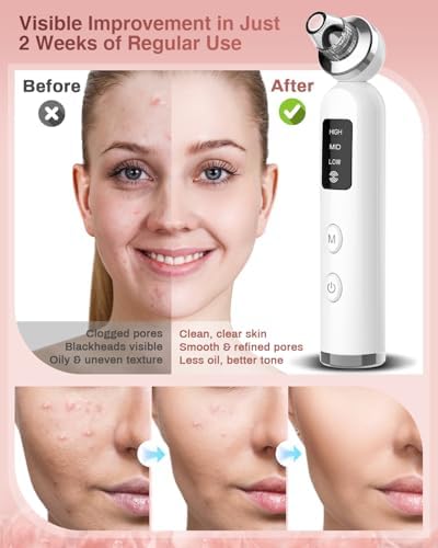 - 【3 Adjustable Suction Levels for Different Skin Types】Choose from 3 suction modes to match your skin needs: Level 1 for dry or sensitive skin, Level 2 for normal or combination skin, and Level 3 for oily or acne-prone skin. Effortlessly tackle blackheads, clogged pores, and excess oil with the right amount of power.