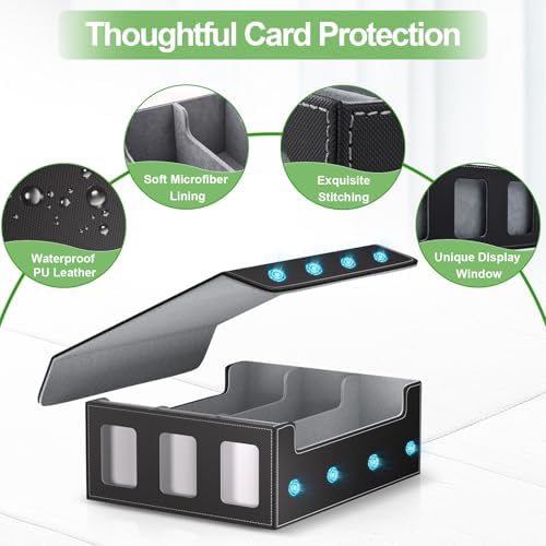 - La𝗿𝗴𝗲 𝗰a𝗽a𝗰𝗶𝘁𝘆:Three rows of commander storage box can store 460+ toploaders, 1000+ double-sleeve cards, or 2400+ sleeveless cards; Meet your storage needs at once; The lid is completely detachable, so you can use it as a gaming pad or put it aside