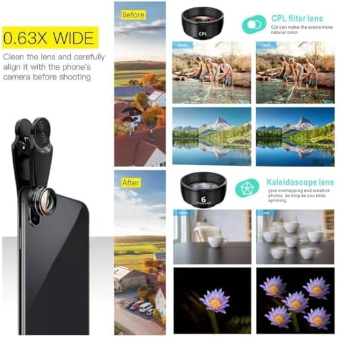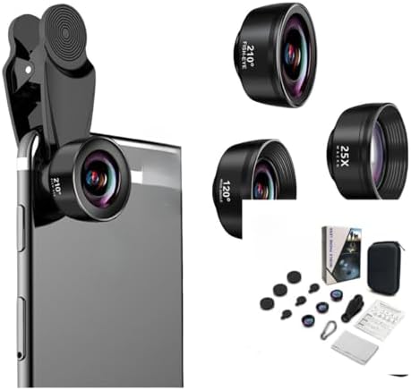 - ✅ 3-in-1 Multi-Functional Lenses – Includes a 210° fisheye lens for fun distortion effects, a 120° wide-angle lens for 10% more coverage, and a 20X macro lens for ultra-close-up shots (best focus: 1.18"-3.6"). Perfect for travel, vlogging & photography!