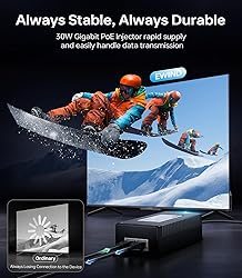 【Lifetime Warranty, Convert Non-PoE to Poe】With no need to replace your existing non-PoE switch/device, you can easily have PoE enabled with the use of EW-PSE101G! Authorized with 50+ rigorous engineering tests of 8,000 overvoltage and overcurrent tests, 10,000+ short-circuit protection tests, etc., its transmission stability rperform NO.1 among all PoE injector. Auto-adapts to device power needs for IP cameras, APs, VoIP phones via Cat5/6/7/8 cables up to 100m (328FT), power supply pin 1/2(+),3/6(-). 【Plug & Play Setup, Intelligent Energy-Saving】1S completes the installation, no software, no configuration - simply connect the non-PoE port to the input and your device to the PoE output, it turns beginners into experts.. In addition, this POE+ injector has the latest circuit algorithm built in to achieve automatically lowers power output when devices are in standby, cutting electricity costs for long-term use—saving users over $100 annually on energy costs versus standard PoE adapter. 【Trustworthy Network Environment】EWIND POE+ injector combines triple-layer electromagnetic shielding with 25dB ultra-quiet operation, slashing EMI by 90% to eliminate signal interference for adjacent devices. NDAA/TAA compliant, you can plan and install networking solutions that government customers demand today (U.S. and Canada Only) 【Fast Heat Dissipation for 24/7 Heavy-Duty Use】Adopting an exclusive agraphene patch heat sink design, this POE+ injector stays cool under full load and extends service life by 60%. This power over ethernet adapter has a high temperature resistance far exceeds that of standard adapter (158°F/70°C), maintaining full 30W power output and Gigabit speeds even after 5,000+ hours of continuous use—ideal for home, industrial, outdoor, etc. 【Top-Quality, Bold Commitment】 EWIND (POE Injector series) has sold 121+ million products worldwide and is always committed to providing first-class quality and service. Your purchase comes with a 5-year extended service (both installation and any accidental issues are included). Plus, we offer 1-on-1 pro support that’s available 24/7, ensuring that your every query is addressed with the utmost care and expertise. Experience the EWIND difference today!